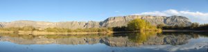 We are in the desert, but it's the mountain desert. We are about a thousand metres above sea level and the towering sentinels of rock you see in the picture above rise another thousand metres straight up. These rock faces make up some of the few features here we can see. The others are a few random hill ranges or mounds and then about fifty miles to our west there are twin towering rock faces. Basically a giant valley. The valley floor used to be prairie plains many moons ago but settling ranchers and their cattle took away all the long grass. Instead the place is covered in cactus now. About a million different types of bloody cactus. I feel like a pin cushion. The watering hole you see in the photo is a manmade construction for the benefit of the cattle that used to graze here. Looks inviting doesn't it? So far the wager is up to $100 for someone to swim across the cow piss. God knows how we got this photo, usually it looks like mud. No Photoshop though I promise!