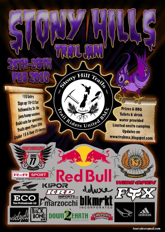 haha classic who the fuck is noel, an there is no E in stony Seb, did you even read the flyer hahha! Anyway yup Henry & Jimmy started that spot along time ago 15 years in fact! As for the lazy kids shit those kids in Dunedin ain’t got no backbone to start with or longevity when it comes to dig’in/building trails! They were only there for the jam cos they didn’t have to dig or lift a shovel the whole time they were there! It was a one in a lifetime chance for those little slackers cos as far as i kno it’ll never happen again!