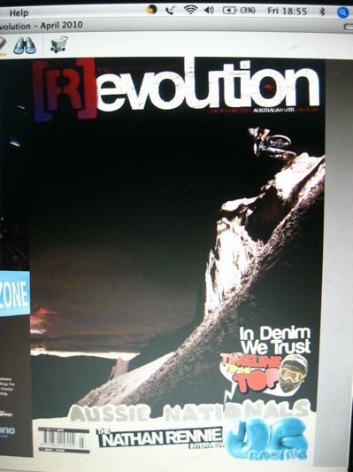 So the April 2010 issue of ozzy ripper mag [R]evolution has hit the shelves. I’m pretty stoked because, as well as having a boatload of good content, I have loads of my writings and even a full page shirtless picture of me rooting my BB.