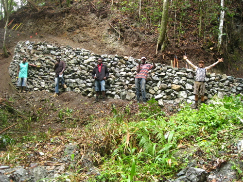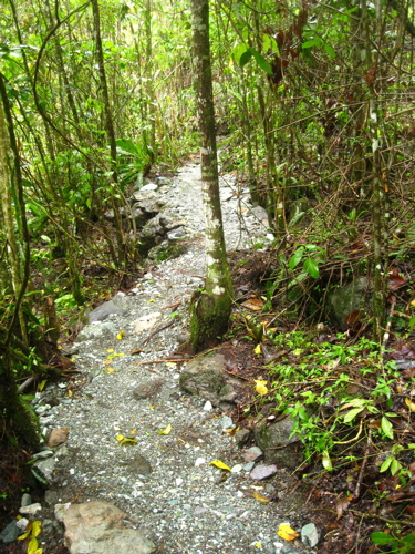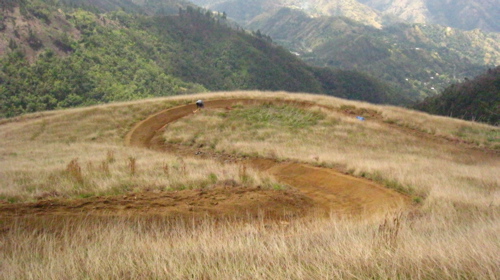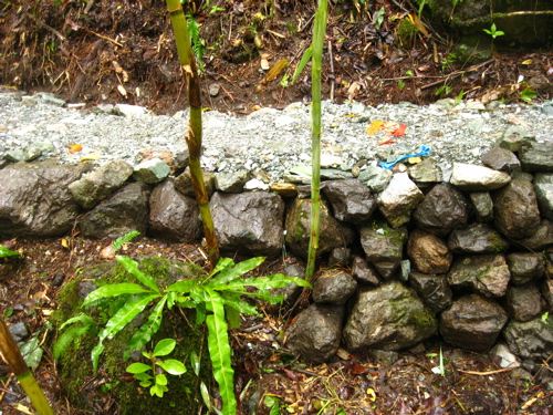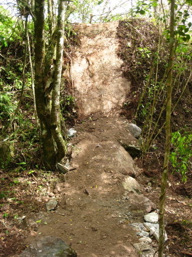 Well I figured it’s about time I bored you to tears with a slideshow of some of the photos of trail I’ve built in Jamaica. [Seb Kemp chinks a salad fork upon his wine glass, dons the tweed jacket, and takes a lazer pointer from his pocket]The first photo is of my favourite building material, rocks. I love rock because it’s not going anywhere, and can help you build more sustainable uphills and downhills. Plus it can either be used to make your trail harder or easier depending on how you apply it.