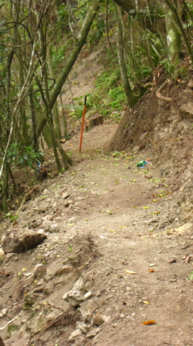 Sometimes we were having bench cut across slopes that were almost impossible to walk across before the trail was cut. Serious work out.