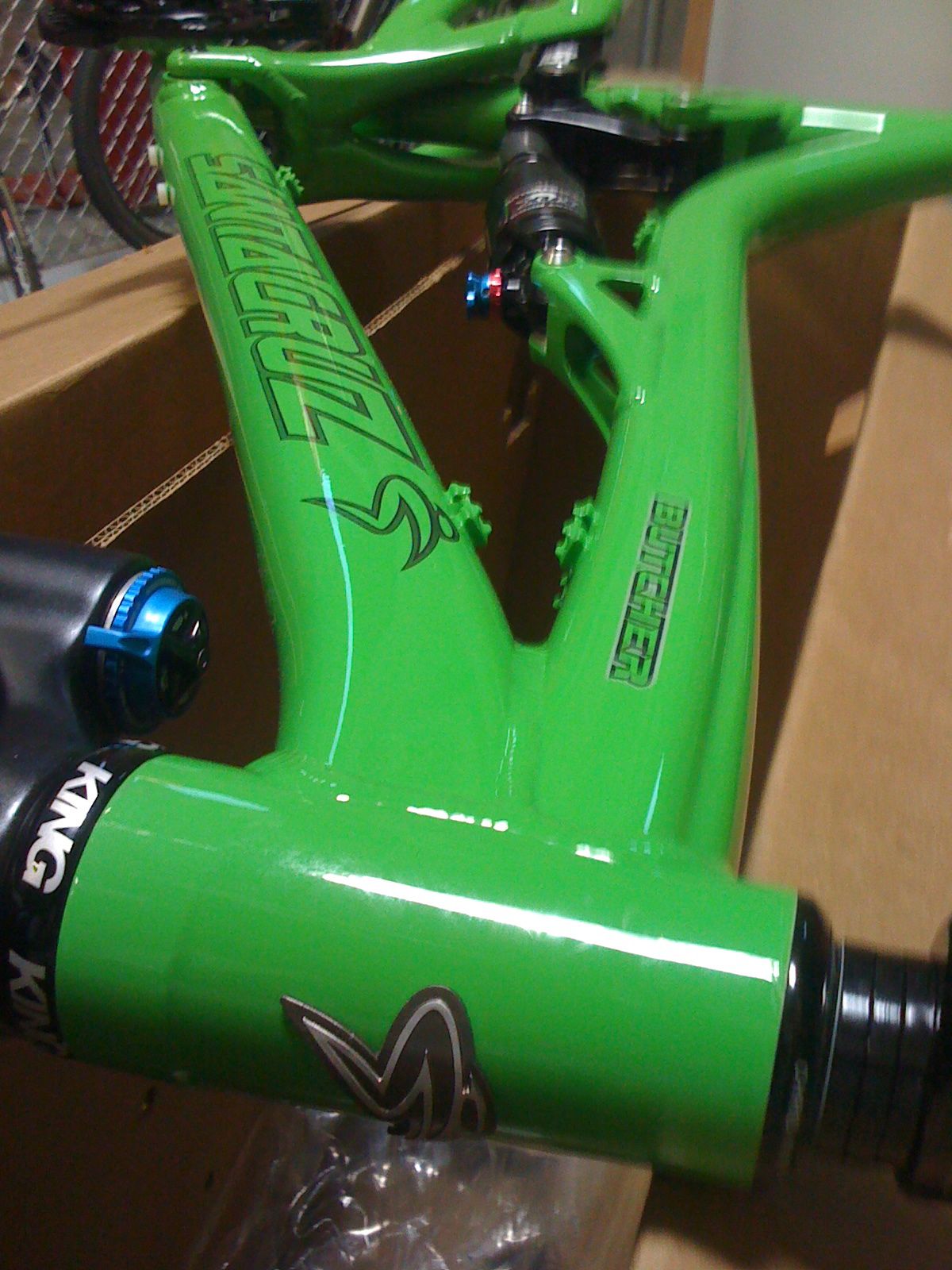 So I caught myself and I went for the Butcher. But then it meant choosing the color and spec. Fark! This doesn’t get easy does it? Well, actually it does because I had a few short and easy criteria for this bike. Firstly, ten speed with chain guide. No messing and the Sram 36-11 cassette with a 34t up front does everything I need, and if I can’t get up a hill with that then I will either be needing to drop it to 32 up front or harden the fuck up. Secondly, dropper post and it had to be the RockShox Reverb as it blows everything else out of the water. Thirdly, the 36 up front, but which model? Van for performance, Float for weight, or Talas for those times I want to speed the steering up a bit (I recently realized I actually like a steeper head angle that I realized. As long as the front centre and BB drop is good then I don’t necessarily need a horizontal head angle). Ferrentino told me I was a moron for going for the Talas and so I went for the Float to keep weight down, but then when I opened the box I found there was a Talas attached. Maybe this is Ferrentinos way of telling me something. And lastly the colour. It had to be bright, that’s all I ask. Blue was a good choice but there was none available so the green it was. I am absolutely in love with this color now, and it helps one of my favorite riders rides a bike in this color too. I don’t think it’s going to get lost in the bush of British Columbia as it is really bright in the flesh.