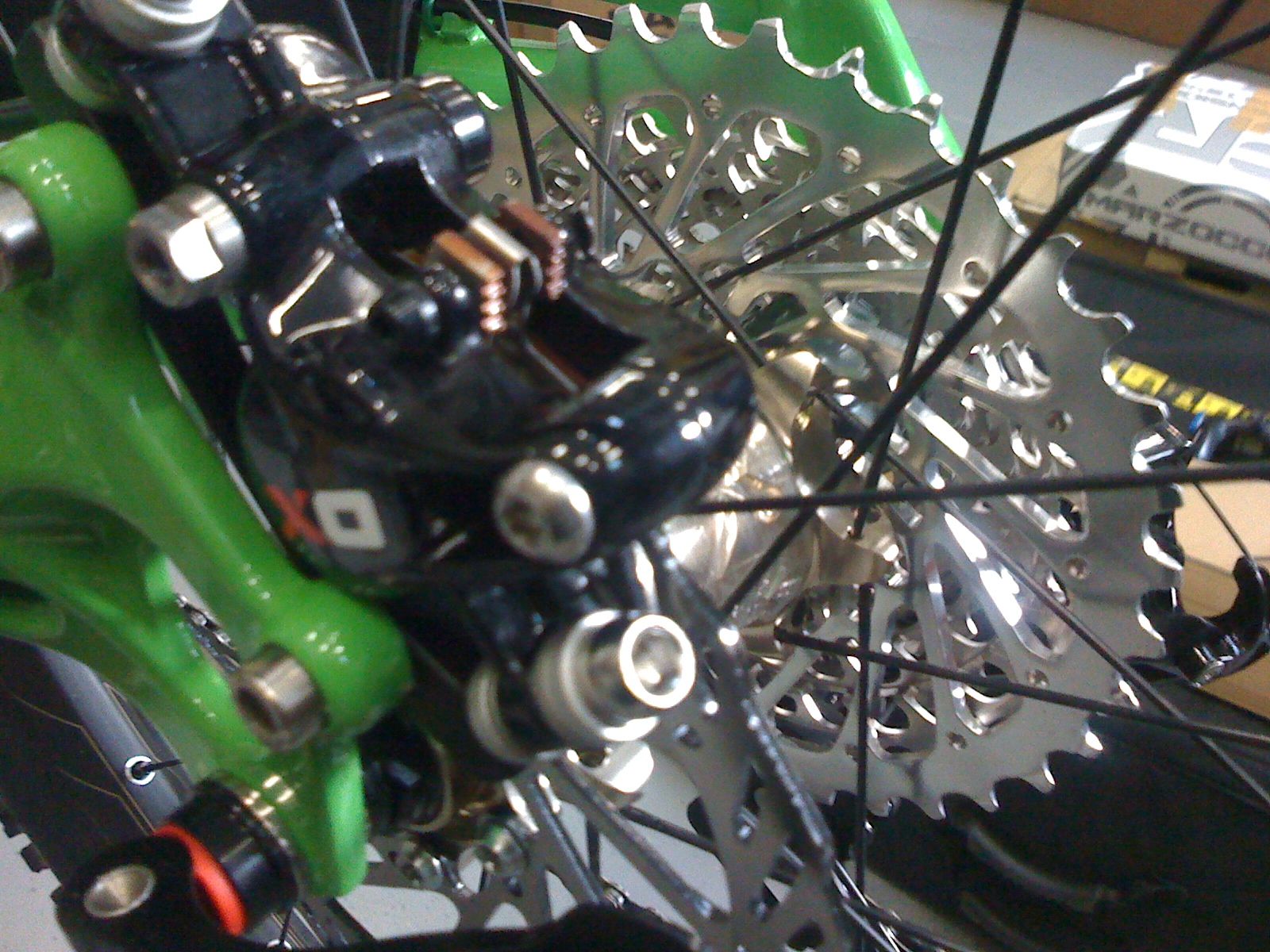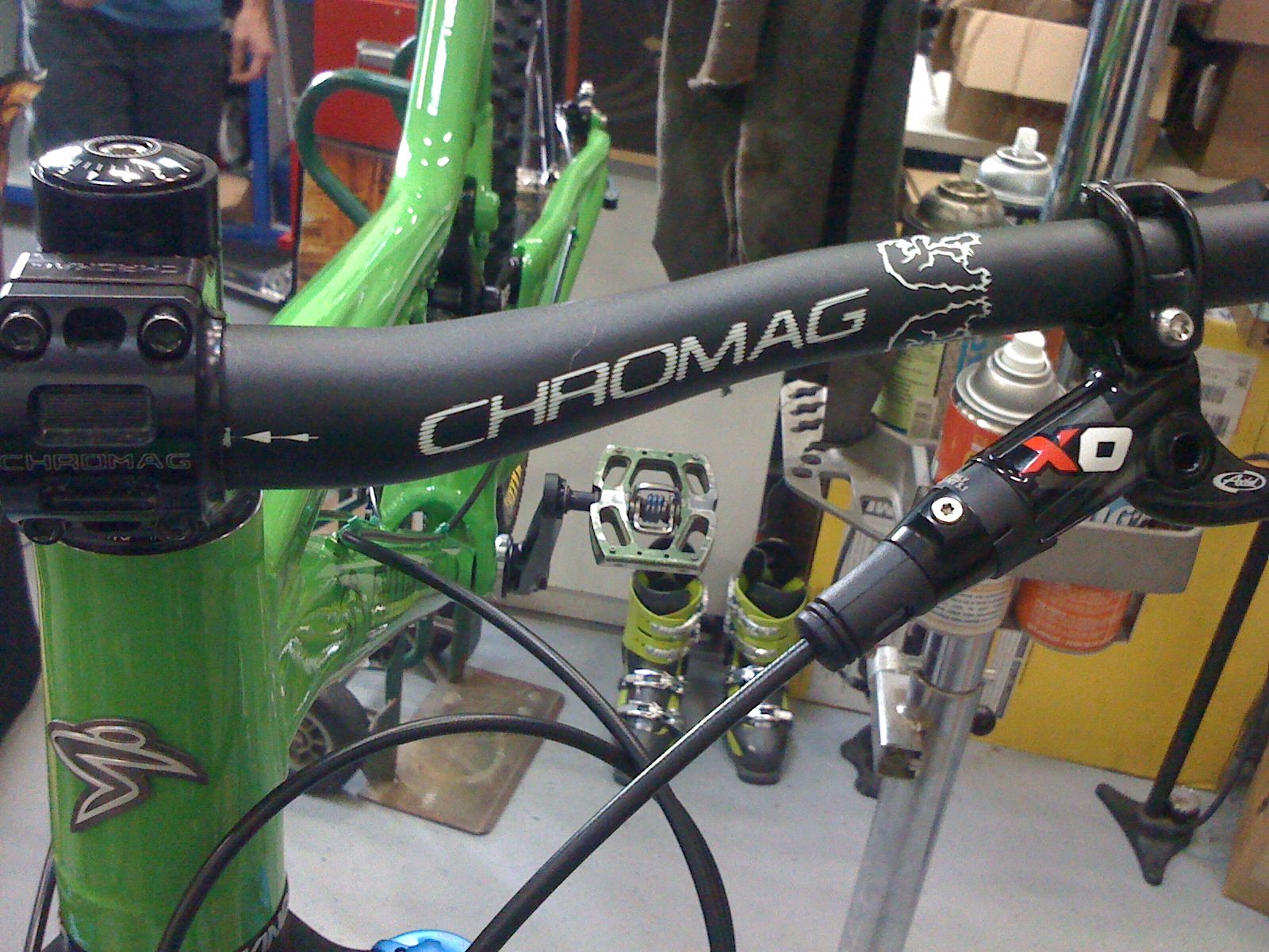 Green as fudge. I'm looking for a name for this bike. Butch? Nope, sounds like a cell mate. Hulk? Not into comics. Mean Green? Sounds like a boy racers car. Snot Rocket? And thats a good name because of what exactly? It does come with bottle cage mounts after all. And don't worry I got rid of all those headset spacers.