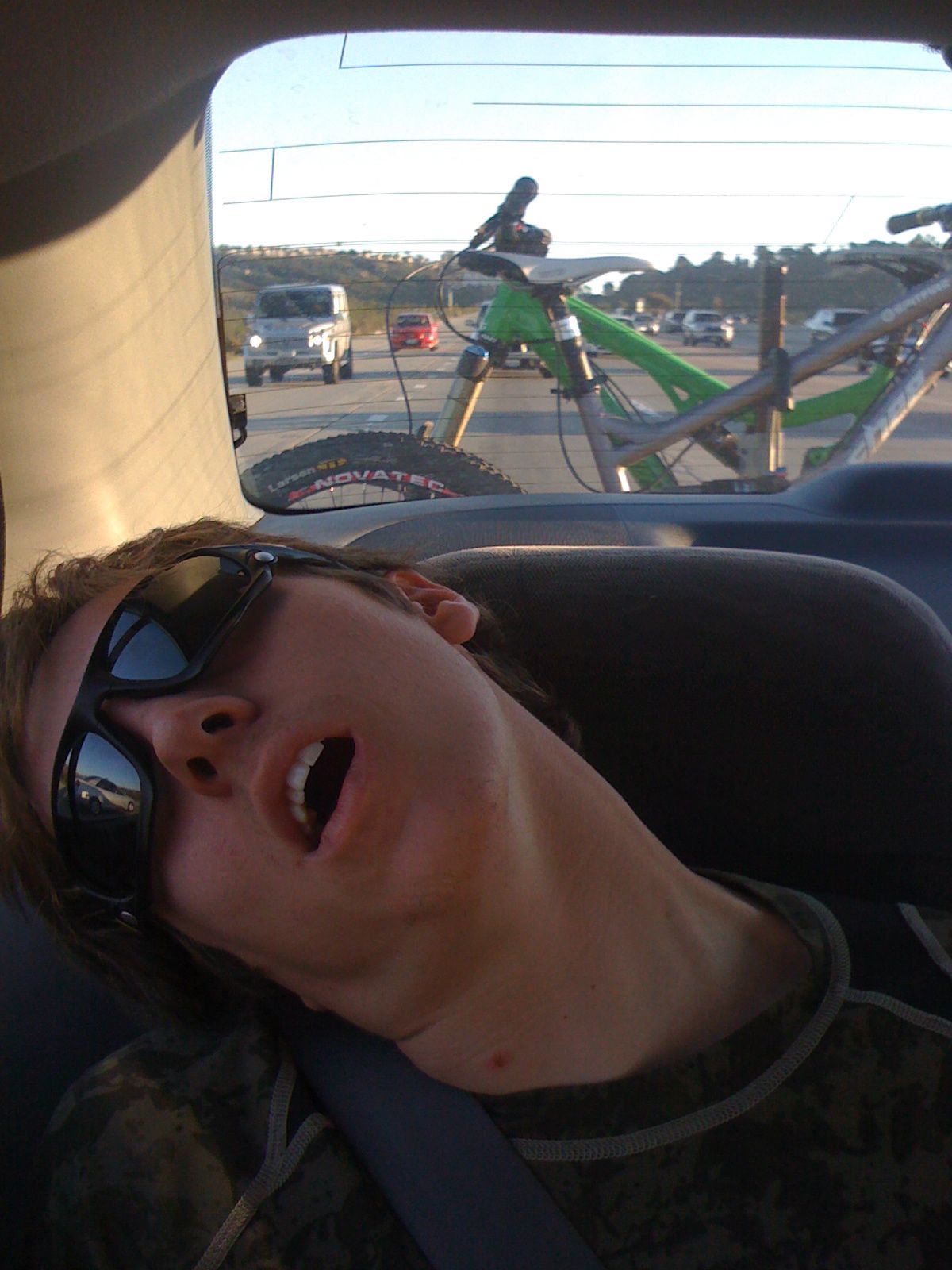 Beautiful isn’t she? No I’m not talking about Squirrel in his prime, I’m talking about that lovely green beauty in the background, hanging on Anthonys bike rack after it got it’s cherry popped on some SoCal singletrack sweetness a few weeks back. Here is a sort of full bike check.