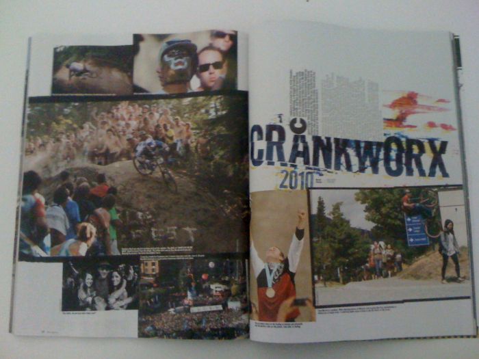 Take for instance the Crankworx photo essay from Dirt 104. Photos over laid upon one another in a more free range montage format, something very hard to pull off on a website.