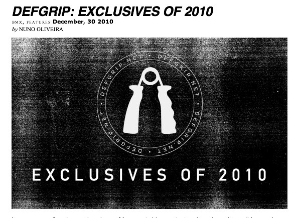 If you click HERE you will be magically teleported to DEFGRIP’s round up of all their original video content from 2010. It is stacked with cleanly executed, truthful journalism, inspiring stories, and portraits of the people and lifestyle of BMXers. My favourites are the Ruben Original and the Oakley/DEFGRIP Chase Hawk videos. Showing that simple insights about a persons life away from the bike can be inspiring to bikers. Go look deeper for more of the DEFGRIP Originals particularly the Adam22 and Cory Nastazio ones.