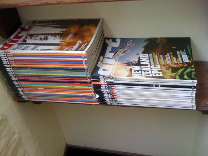 A stack of Dirt mags next to the toilet means lots of long therapeutic sit downs