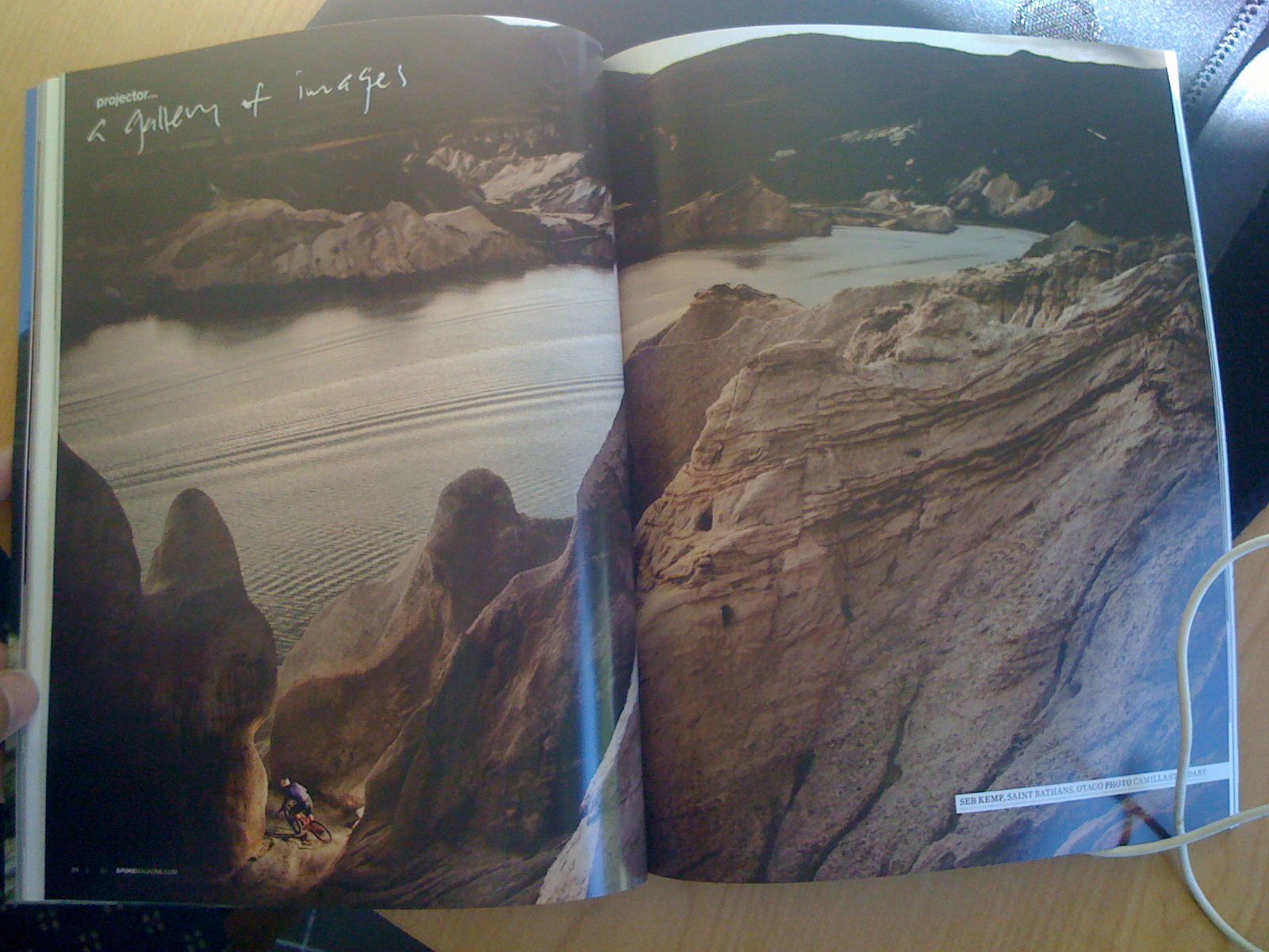 Double page spread of the Tallboy getting all freeride in the photo issue of Spoke Magazine. Shot by Camilla Stoddart