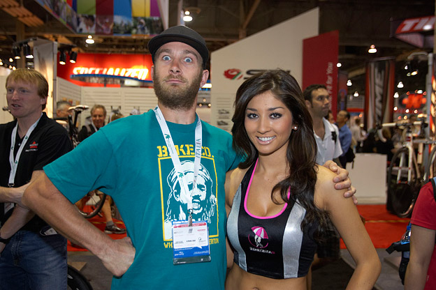 Each September a small cabal of NSMB newsroom hacks head off to Las Vegas with camera and pen in hand, ready to report on the latest and greatest in high performance bicycle developments from Interbike. Each year we try to do that but each year we get side tracked by silicone bumper girls who stand guard on the stands like hyper sexed sentries. These puffed out, pimped out princesses of man-pantie filling dreams are stationed throughout the show to attract and lure people to the products on display, but most of the time we are so distracted by the products they are displaying that we forget what planet we are on and drift off into a salivating, panting, dribbling, giggling, blushing reverie.