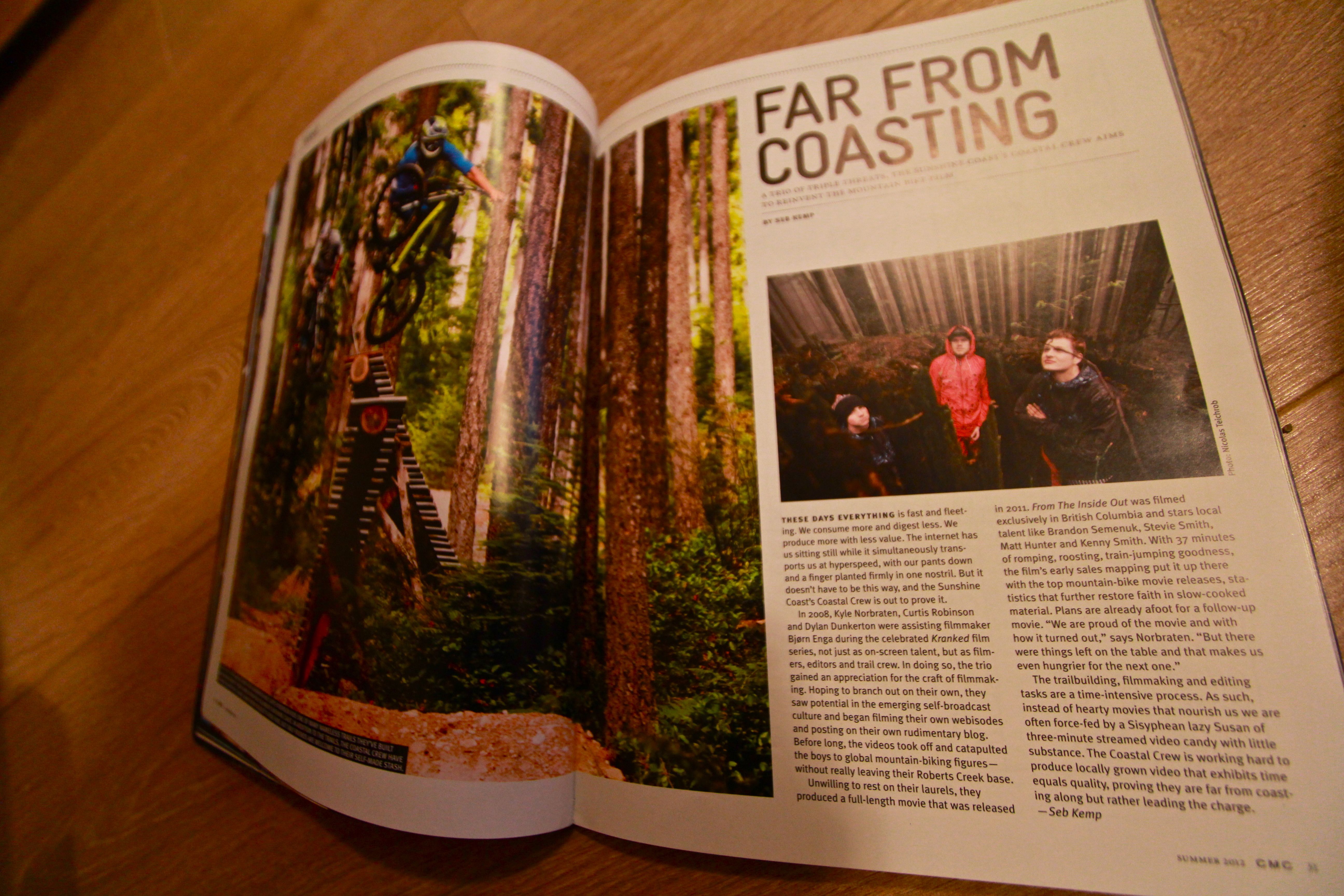 The summer issue of Coast Mountain Culture has a short piece I wrote about the Coastal Crew. Coast Mountain Culture Magazine is an international-calibre biannual publication dedicated to the exploration and celebration of mountain culture as it exists throughout the vast coastal mountain ranges of western North America. I am incredibly proud and honoured to have my work in this magazine. The magazine is such high quality and is seen by so many people around the PNW. This also marks the first non-mountain bike specific magazine that I have had my work featured in.